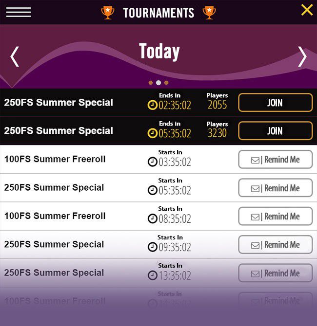 Enter Freerolls: Click on the “Join” button that will give you the tournament spins for the freeroll tournament.